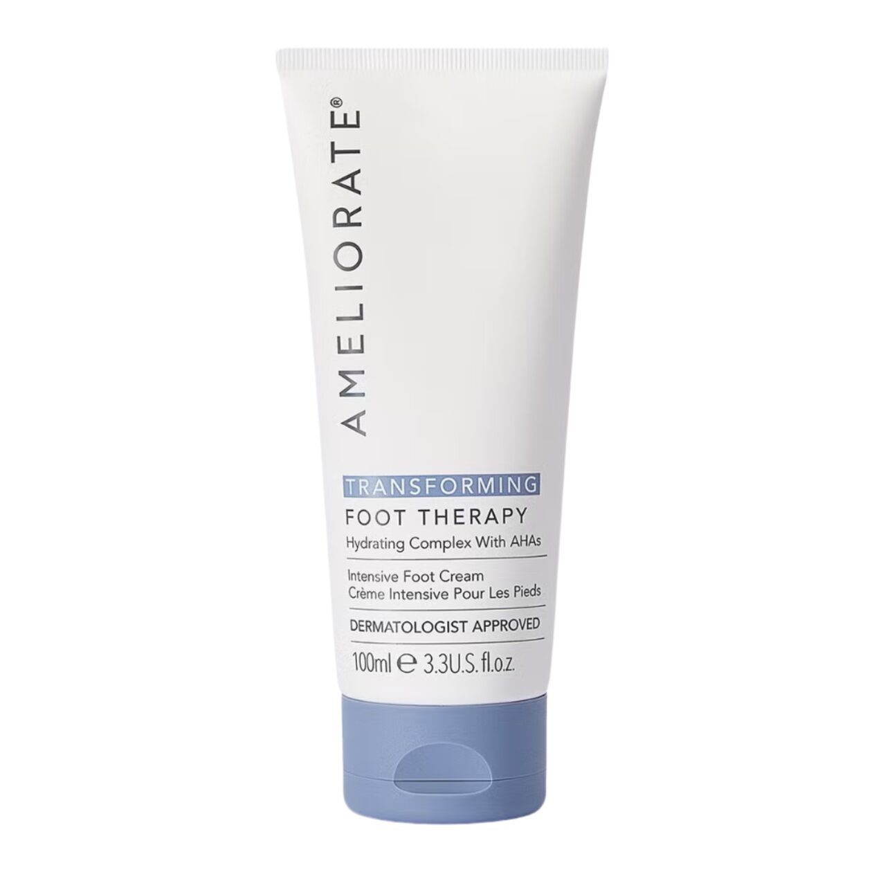 The Ameliorate Transforming Foot Therapy is a dermatologist-developed foot cream. It transforms very dry feet and cracked heels with lactic acid to gently exfoliate, plus shea butter and jojoba oil to deeply condition and restore essential moisture.