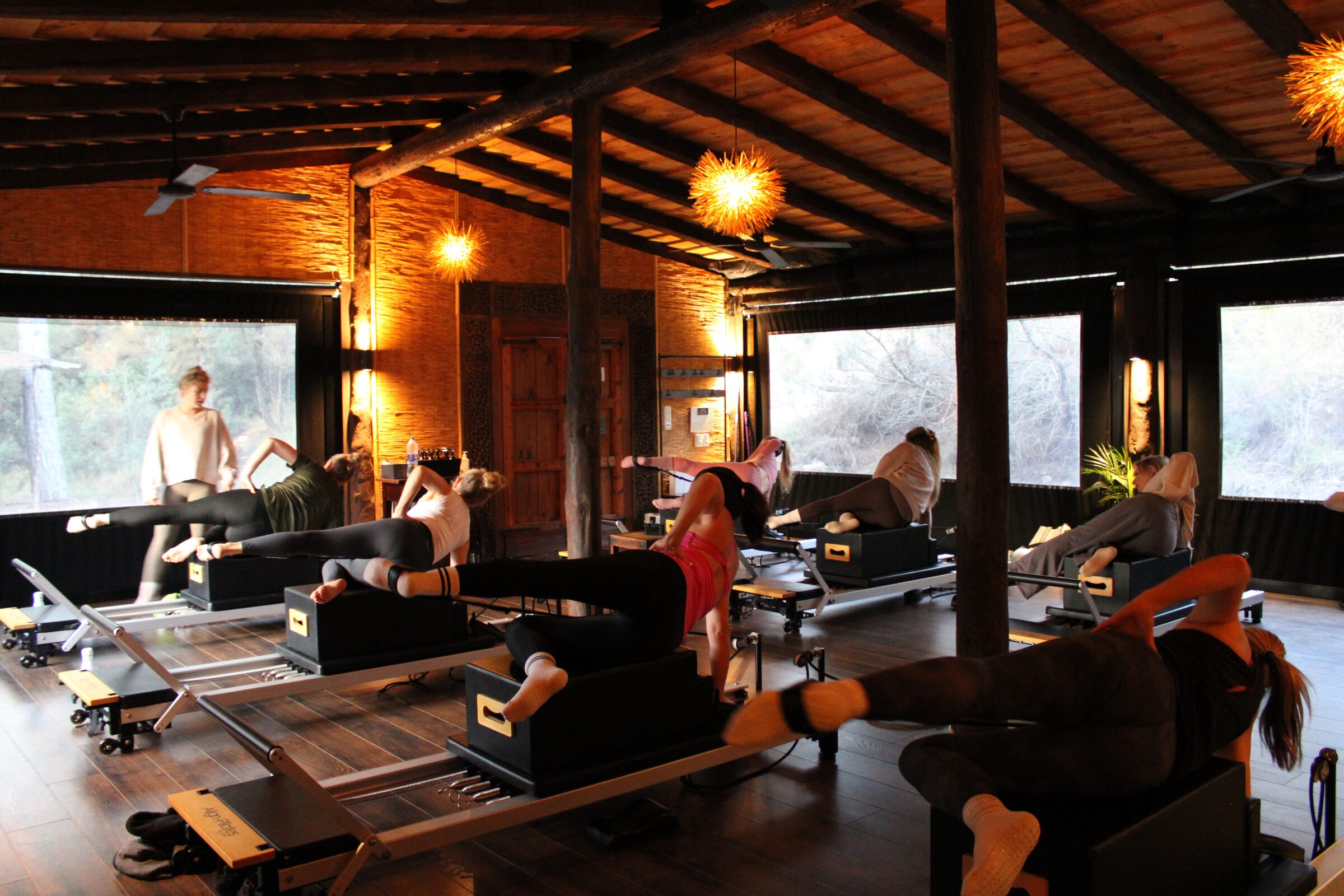 Once we’d settled in, we kicked things off with our first reformer session. This was held in a warm, wooden studio overlooking lush foliage. Bliss!