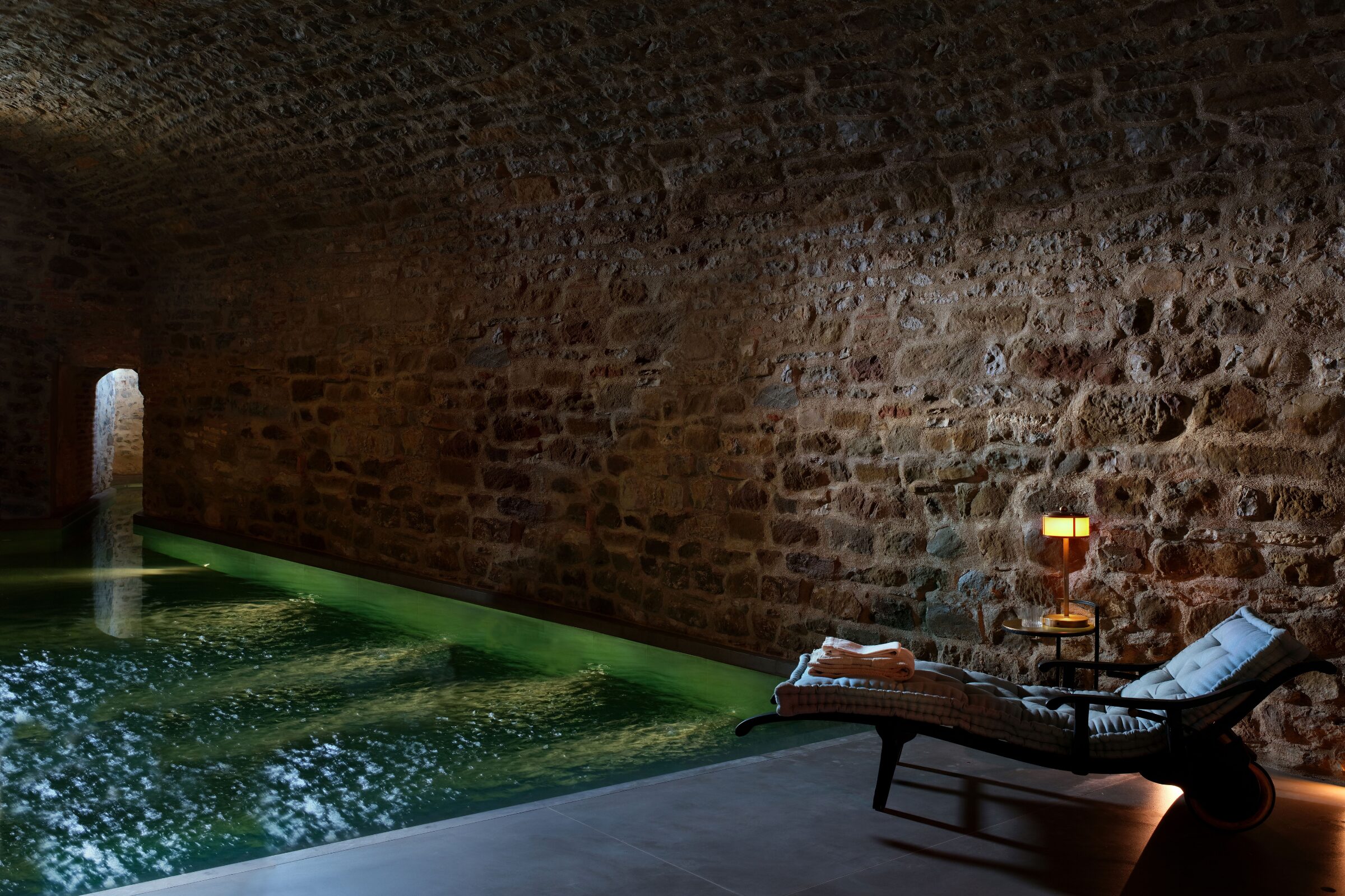 This subterranean oasis is built into the ancient wine cellars and features a large salt-water Roman bath, complete with vaulted stone arch and tropical rain shower. In adjacent rooms you’ll find an octagonal hammam and fragrant Swedish sauna crafted from oak. The perfect spot to ease away any lingering tension.