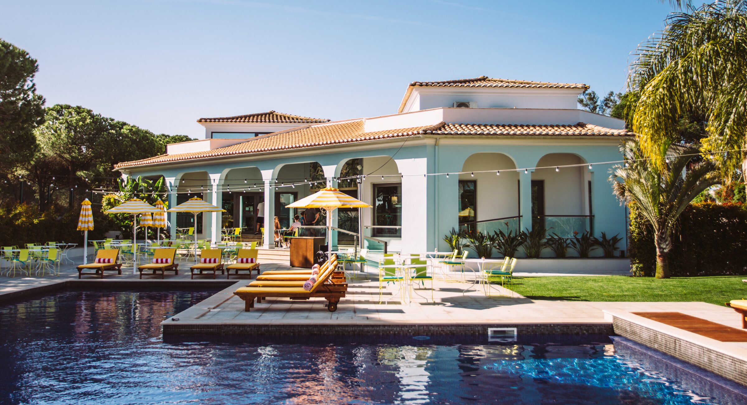 We stay at the Magnolia Hotel. This boutique hideaway (complete with a 1950s Palm Springs aesthetic) is located right on the doorstep of the resort and about a 15-minute drive from Faro airport. Charming and relaxed, it strikes a sweet spot between design-led flair and easygoing comfort. It’s a great base to explore both the complex and surrounding area.